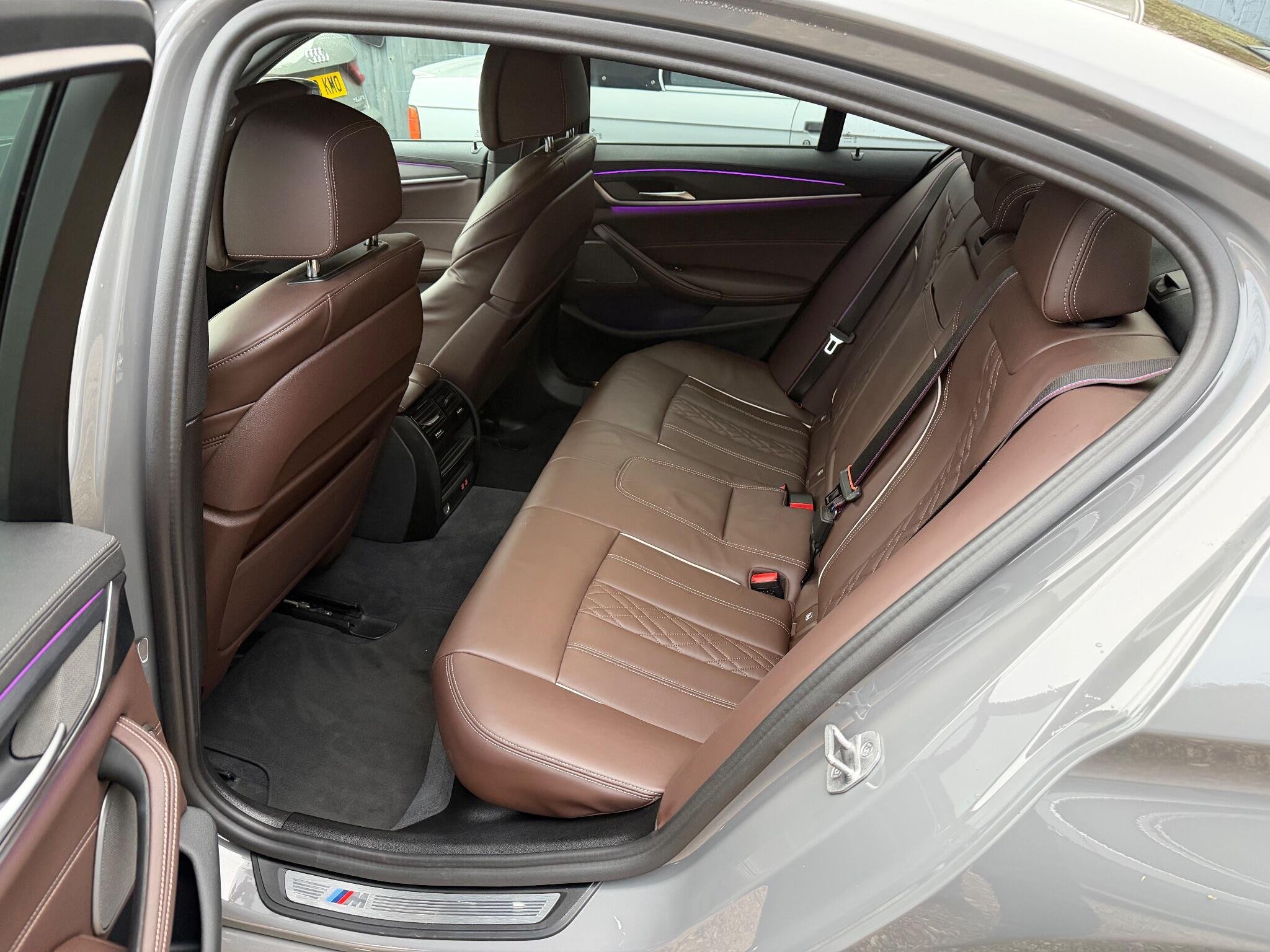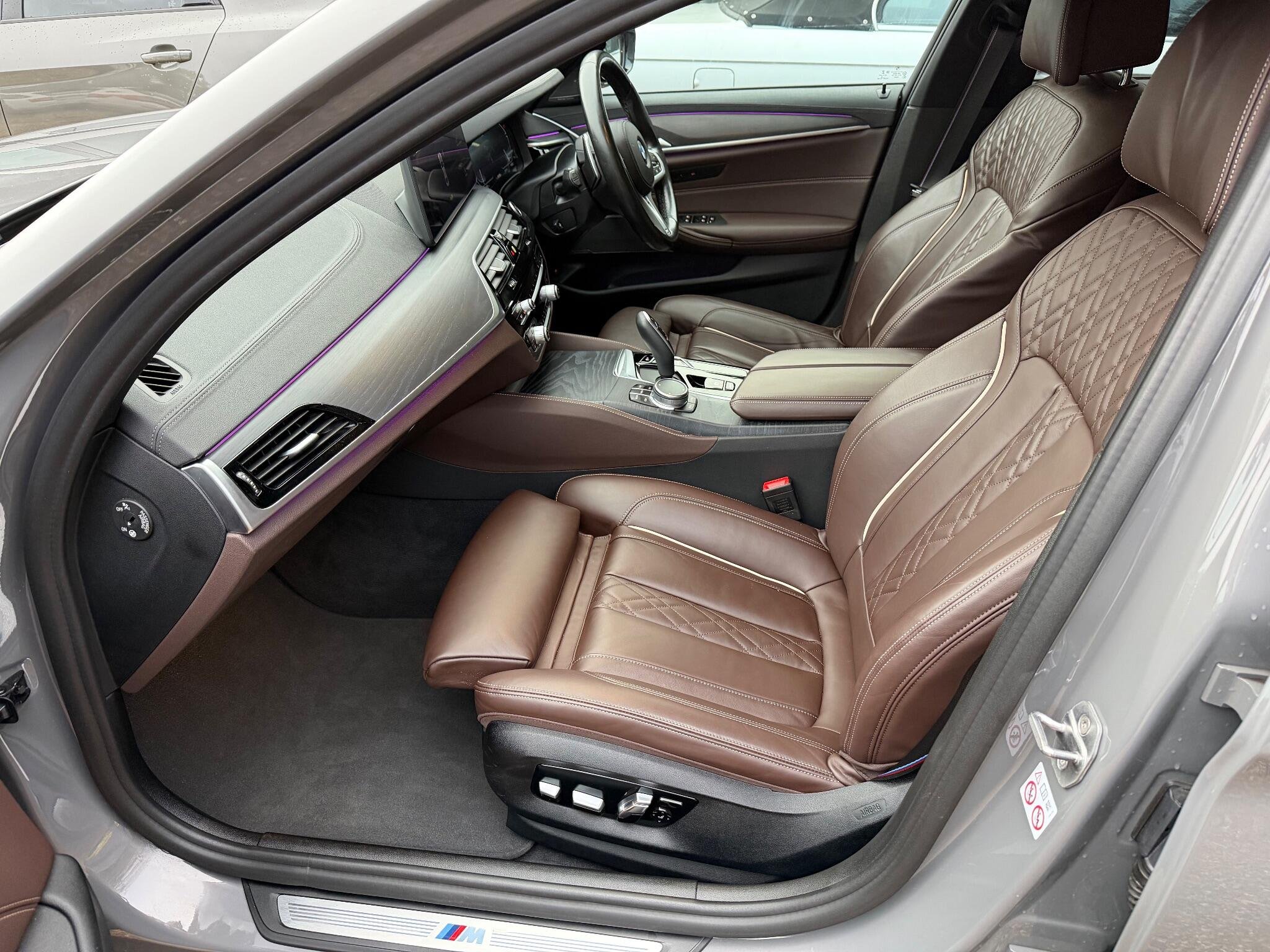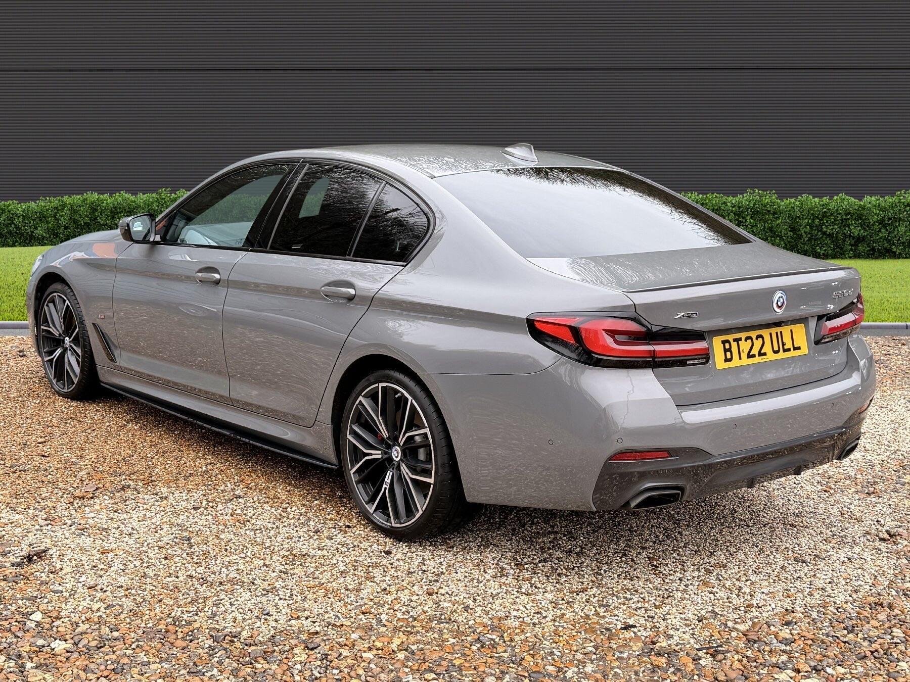 VAT qualifying. This 2022 BMW 5 Series 530d M Sport is presented with a clear vehicle history check, offering peace of mind for its next owner. This four wheel drive model features a powerful 3.0 litre diesel hybrid engine, meeting Euro 6 emission standards. The M Sport trim enhances its sporty appeal, complemented by striking 20 inch M Light Y-Spoke Style 846 Bicolour Jet Black alloy wheels fitted with run flat tyres. Inside, you will find the premium Harman Kardon Surround Audio Sound System for an immersive listening experience, alongside the comprehensive Driving Assistant Professional( Adaptive cruise control, Lane assistant, Blind spot monitoring)and Visibility Pack which includes LED headlights, ensuring excellent illumination and advanced safety, Exclusive Mocha nappa leather interior, Comfort seats for long trips, Adaptive suspension.