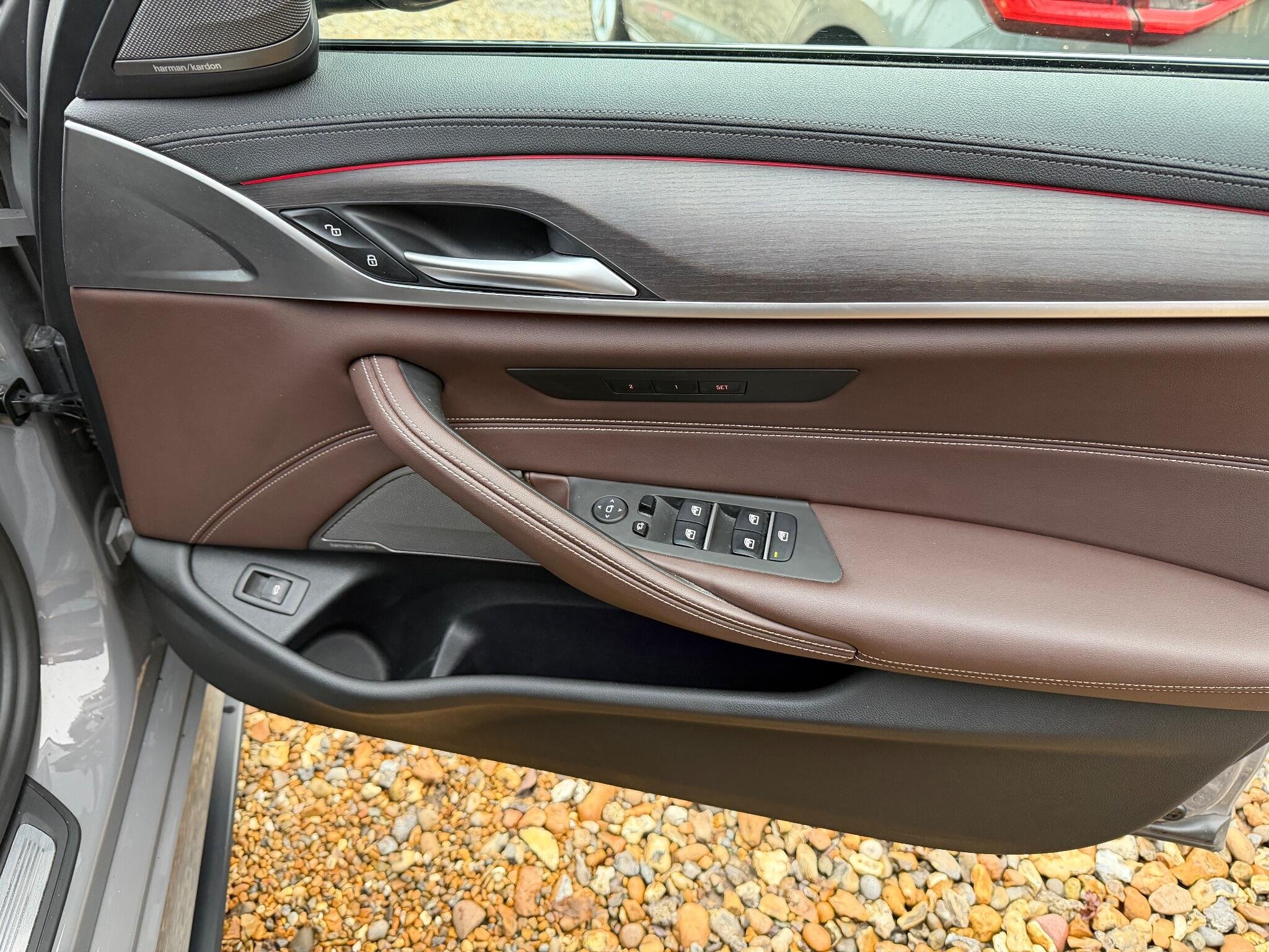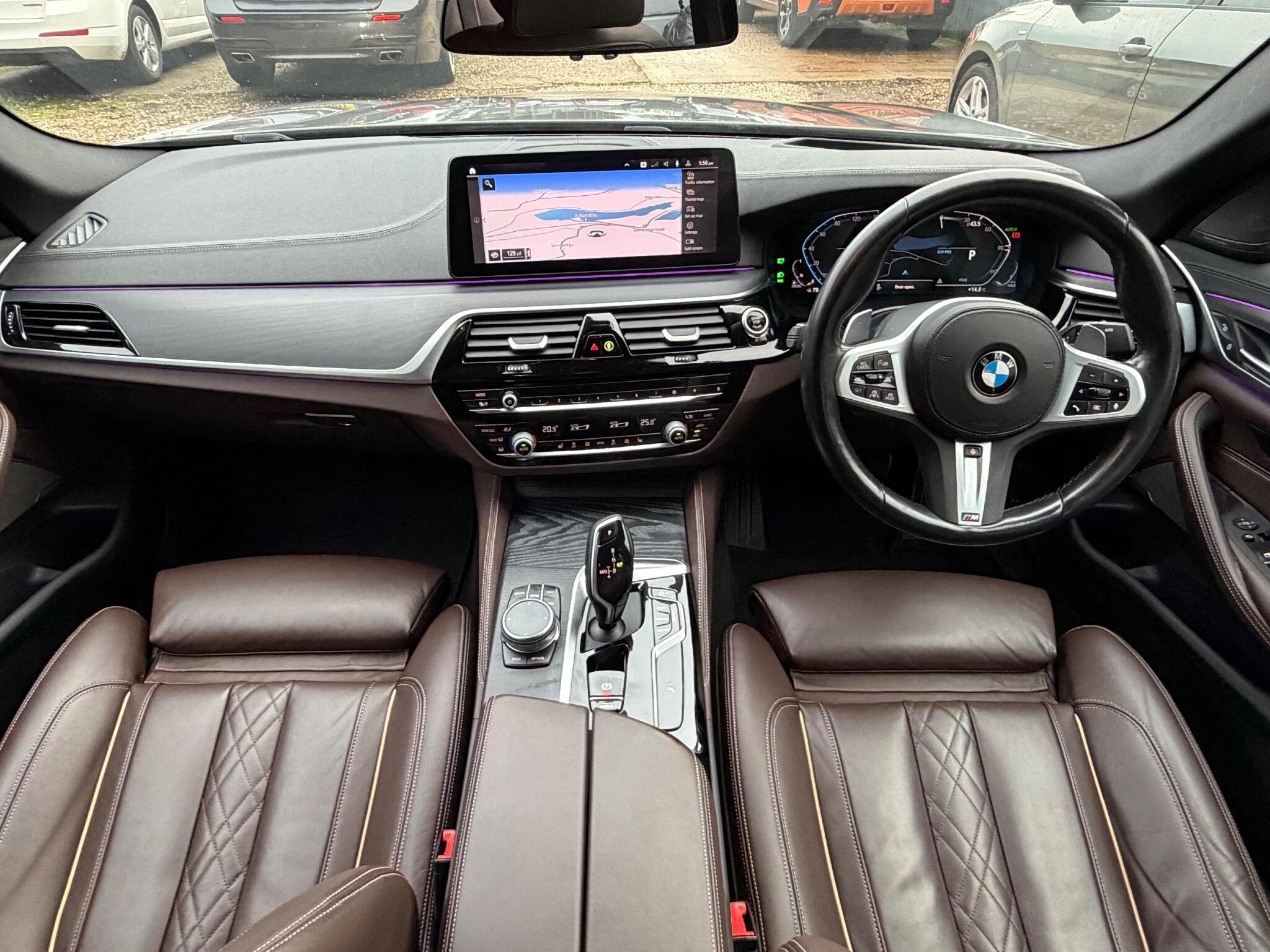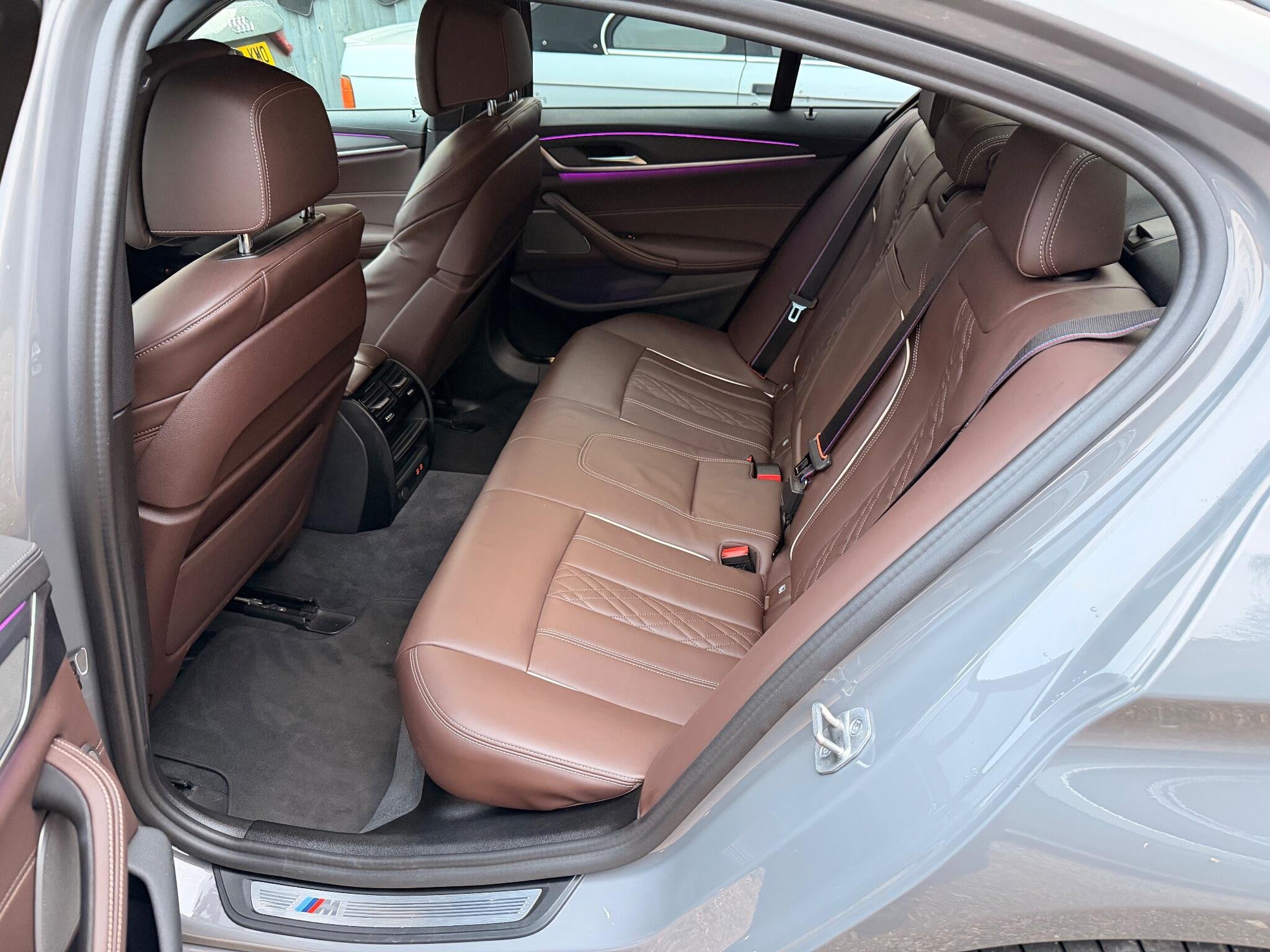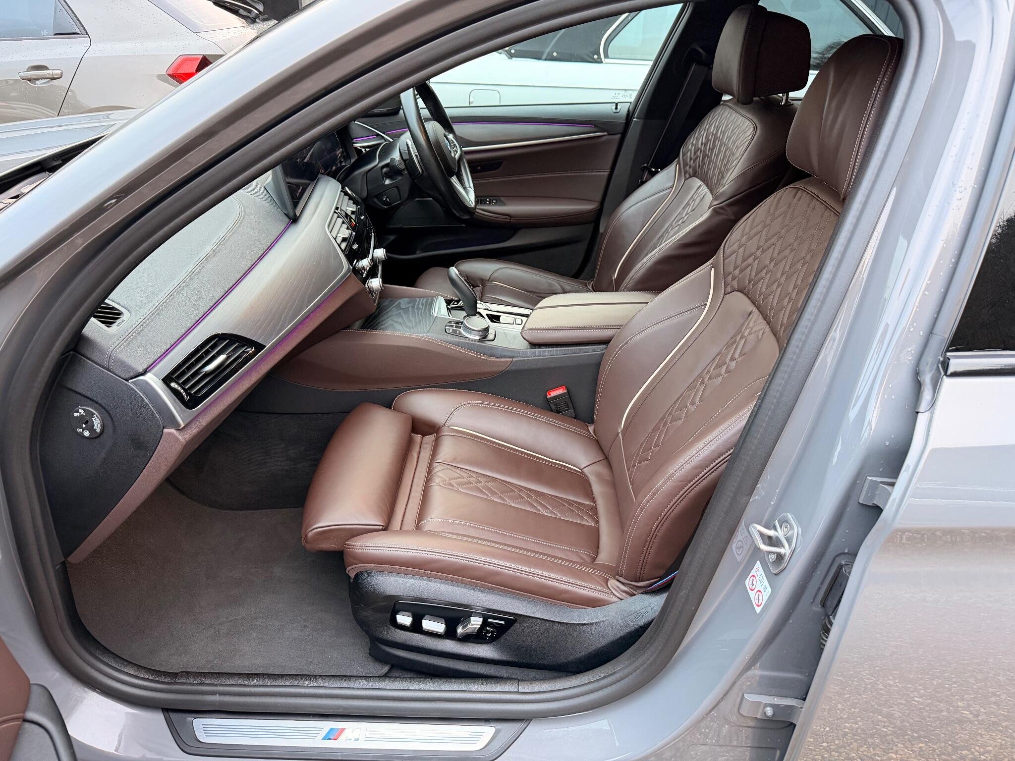 VAT qualifying. This 2022 BMW 5 Series 530d M Sport is presented with a clear vehicle history check, offering peace of mind for its next owner. This four wheel drive model features a powerful 3.0 litre diesel hybrid engine, meeting Euro 6 emission standards. The M Sport trim enhances its sporty appeal, complemented by striking 20 inch M Light Y-Spoke Style 846 Bicolour Jet Black alloy wheels fitted with run flat tyres. Inside, you will find the premium Harman Kardon Surround Audio Sound System for an immersive listening experience, alongside the comprehensive Driving Assistant Professional( Adaptive cruise control, Lane assistant, Blind spot monitoring)and Visibility Pack which includes LED headlights, ensuring excellent illumination and advanced safety, Exclusive Mocha nappa leather interior, Comfort seats for long trips, Adaptive suspension.