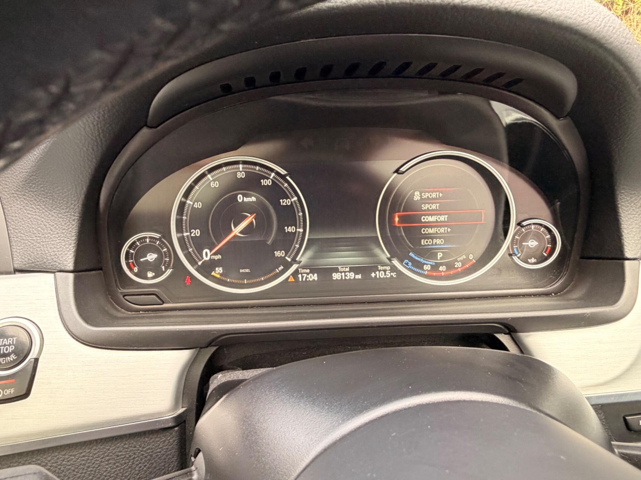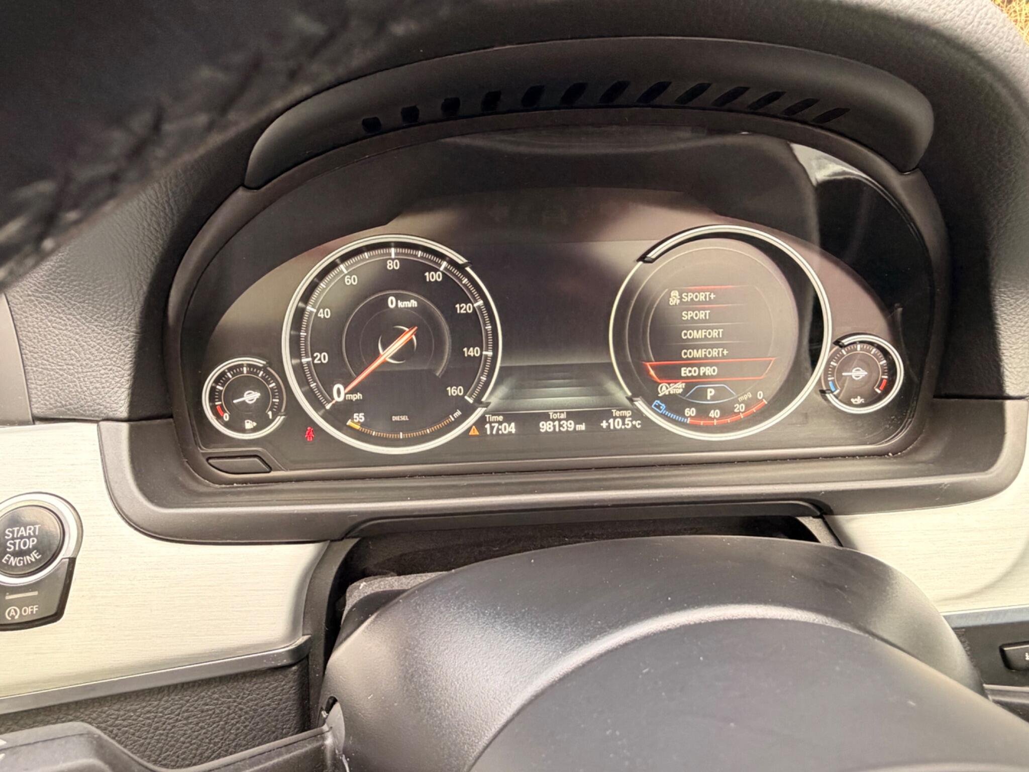 This 2014 BMW 5 Series 535d M Sport presents a compelling proposition with its Full service history and low mileage of 98,000 miles for its age. This Euro 6 compliant model boasts a powerful 3.0L diesel engine, paired with the sporty M Sport trim and featuring desirable additions such as a Head Up Display, a Panoramic Glass Sunroof, and Variable Damper Control for an adaptable driving experience. The 19 inch M Double Spoke alloy wheels and Multi Functional Instrument Panel further enhance its sophisticated appeal.